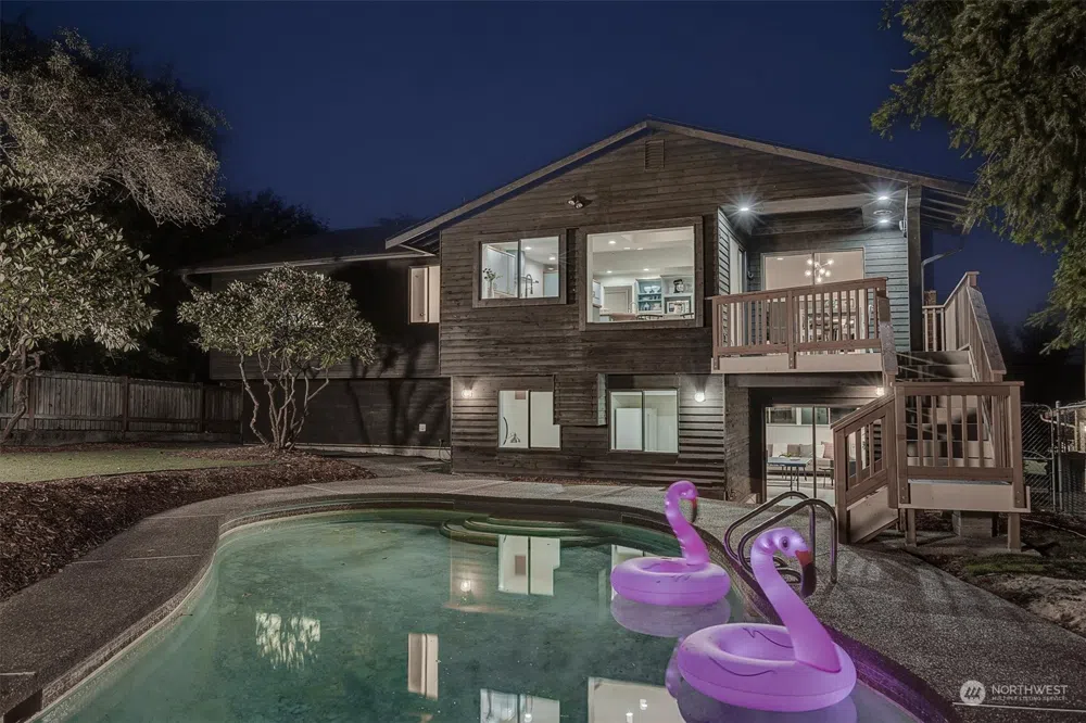 This newly update Mid-Century Modern home nestled east of Sandpoint Way in Matthews Beach is waiting for you. Vaulted ceilings, huge windows, a flawless floor plan, and views of Lake WA make this home a rare MCM find. With tons of entertaining space inside and outside, your home will be the center of friendship and fun year round. Dinner parties upstairs, game nights downstairs, and pool party BBQs in your expansive backyard. And when you are not entertaining, you can relax in your gorgeous remodeled primary suite complete with a walk-in closet/ dressing area, a luxurious private bath, and space enough for a king bed, and a sofa sitting area. All this just blocks to the beach and the Burke-Gilman trail, and minutes to Magnuson Park.
